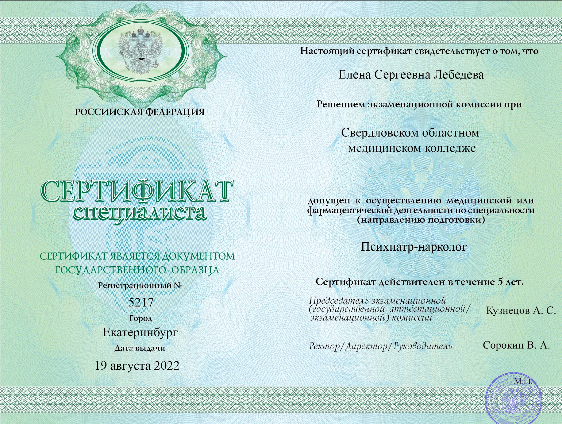Елена Сергеевна Лебедева врач нарколог клиники доктора Стукаловой в Хомутово