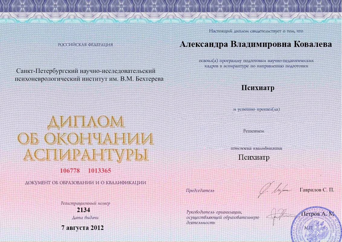 Должность: Психиатр, врач-общей практики, кандидат наук1